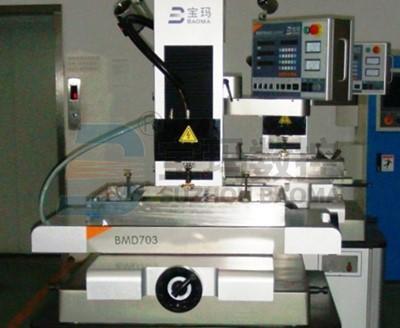 "Là dòng máy dùng để khoan lỗ bằng công nghệ EDM, khoan lỗ mở để cắt dây EDM, khoan lỗ mở với độ sâu được định sẵn. Máy khoan xung EDM hãng BAOMA dòng BMD703-400 sử dụng điện cực ống đồng có đường kính nằm trong dải 0.2 - 3mm để gia công chi tiết, chiều sâu khoan lớn nhất là 300mm. Máy có hành trình làm việc là 300 x 400 mm, hành trình trục Z là 300 +(320m) mm"